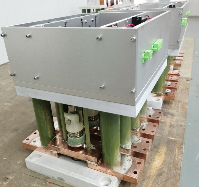 在串聯(lián)逆變的中頻電源柜中,當(dāng)一組整流橋連接兩路(或兩路以上)逆變回路時(shí),直流隔離開(kāi)關(guān)是一種用以連通和切斷整流回路和逆變回路的開(kāi)關(guān)器件。隔離開(kāi)關(guān)是在分位置時(shí),觸頭間有符合規(guī)定要求的絕緣距離和斷開(kāi)信號(hào)及標(biāo)志;在合位置時(shí),能承載正常回路條件下的電流和合閘信號(hào)及標(biāo)志的開(kāi)關(guān)設(shè)備。它本身的工作原理及結(jié)構(gòu)比較簡(jiǎn)單,但是由于工作可靠性要求高,對(duì)串聯(lián)逆變的中頻電源柜的設(shè)計(jì)和安全運(yùn)行的影響均較大。